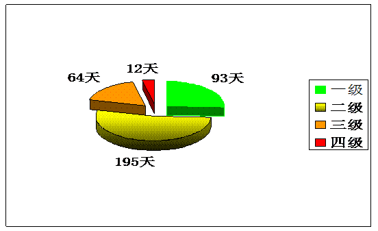 二氧化硫、二氧化氮、可吸入颗粒物、细颗粒物、一氧化碳浓度日平均值和臭氧小时均值到达二级标准天数分别为100%、91.8%、98.1%、86.0%、100%和92.65%。