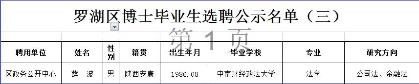根据招考公告的要求,经公开考试、体检、考察等程序,现对拟聘用人员进行公示,公示时间为2016年10月8日至10月14日。公示期间,任何单位和个人均可通过来人、来电、来信等方式向罗湖区委组织部(地址:区管理中心大楼1112室,联系电话:25666279、25666855,投诉电子邮箱:lh_zzbjdk@szlh.gov.cn,邮政编码:518003,投诉信箱:设在管理中心大楼一楼大厅)反映公示对象存在的问题。反映情况和问题必须实事求是,客观公正。反映人必须提供真实姓名、联系单位、地址和电话,以示负责。罗湖区委组织部对反映人姓名将严格保密,对所反映的情况和问题,将认真进行调查核实,弄清事实真相,并视情况以适当方式向反映情况的单位或个人反馈,调查属实并影响聘用的,取消拟聘用人资格。