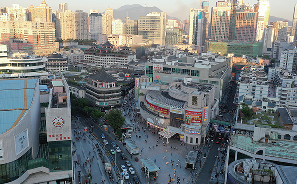 In the 1980s and '90s, Renmin South CBD became a popular shopping site in Shenzhen. In recent years, the Luohu government has increased investment to renovate the business district. Today, more than 300 top-500 enterprises in technology, finance, real estate and other sectors have settled here, giving the over-30-year-old business district on Renmin South Road a brand-new look.