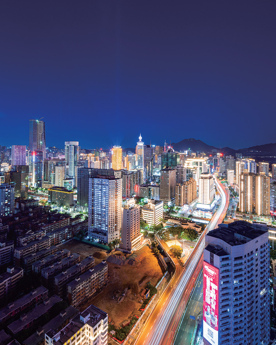 In the early days of the Shenzhen Special Economic Zone, Huangbei Sub-district had only a few dirt roads and alleys lined with a small number of buildings, makeshift outlets for entrepot traders, and construction sites. Now, dusty roads have become straight boulevards, and crowded urban villages have been replaced by gleaming high-rise buildings.