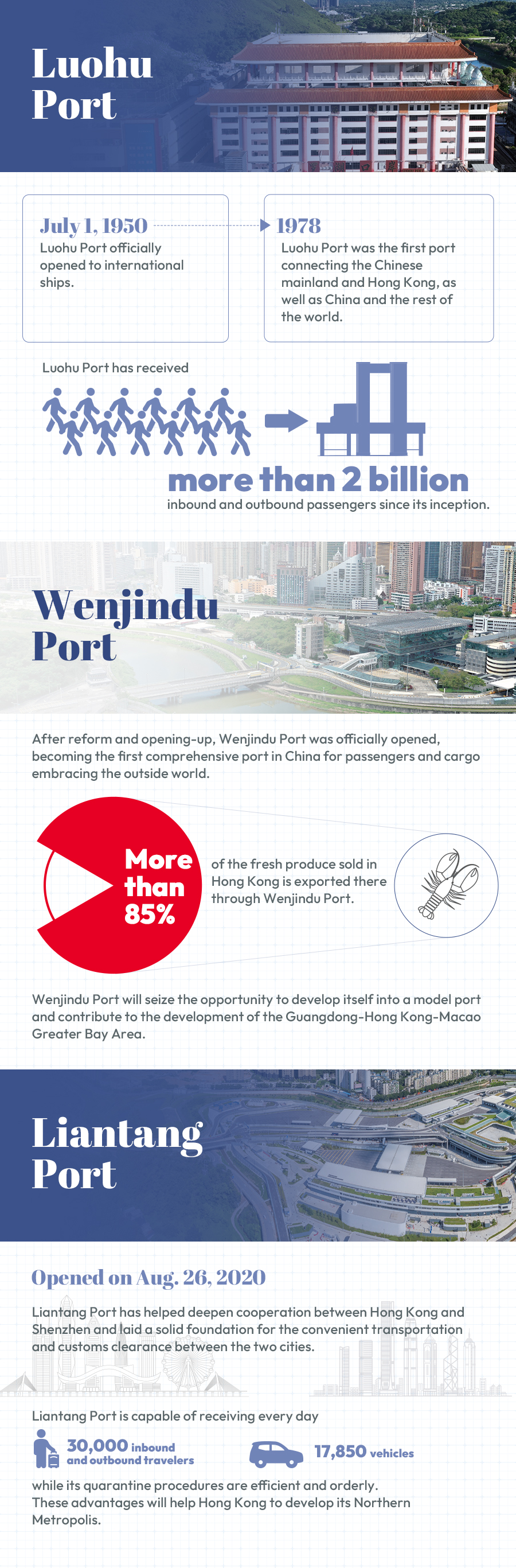 Luohu Port in Nanhu is the first port connecting Hong Kong and the Chinese mainland and also the port with the largest passenger flow between Shenzhen and Hong Kong.