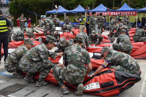 本次演练通过“盲演”拉动,主要聚焦于城市内涝、树木倒伏、边坡垮塌等防风防汛重点任务,检验各应急队伍快速反应能力。此次三防实兵拉动演练,各单位严格按照预案规定职责,分工明确,配合密切,提高了各部门应急联动能力,充分展示防汛抢险队伍的实战能力。 应急处置结束后,十个街道三防应急队伍还开展了三防装备器械实操大比武,队员们穿着统一专业救援服装,精神抖擞,动作娴熟、配合默契。 大比武科目有发电探照灯一体机使用操作、冲锋舟组装使用、油锯使用操作、应急抽水泵使用操作等,现场裁判员根据参赛队员的速度、操作专业性打分,各街道应急队伍进行了紧张激烈的角逐。最终东晓街道获得一等奖,笋岗街道、东湖街道获得二等奖,清水河街道、翠竹街道、东门街道获得三等奖,莲塘街道、黄贝街道、南湖街道、桂园街道获得优胜奖。