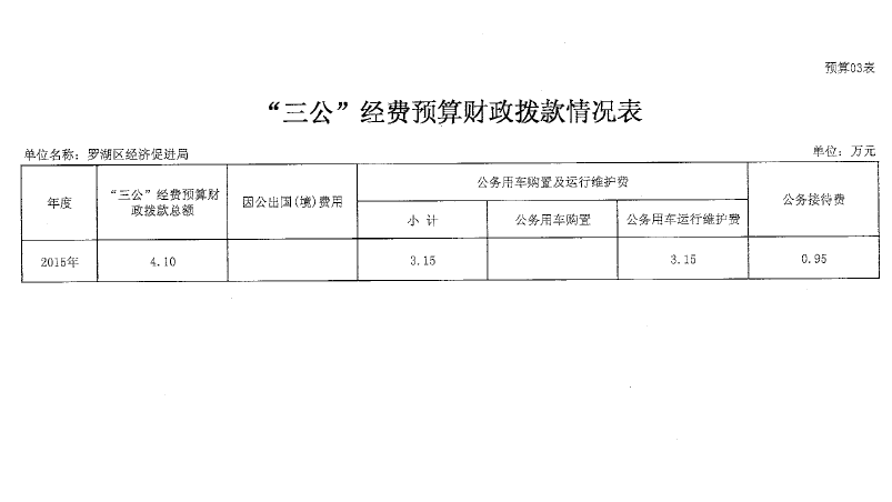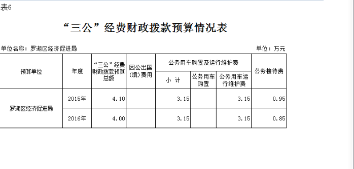 罗湖区经济促进局2016年“三公”经费预算财政拨款情况表