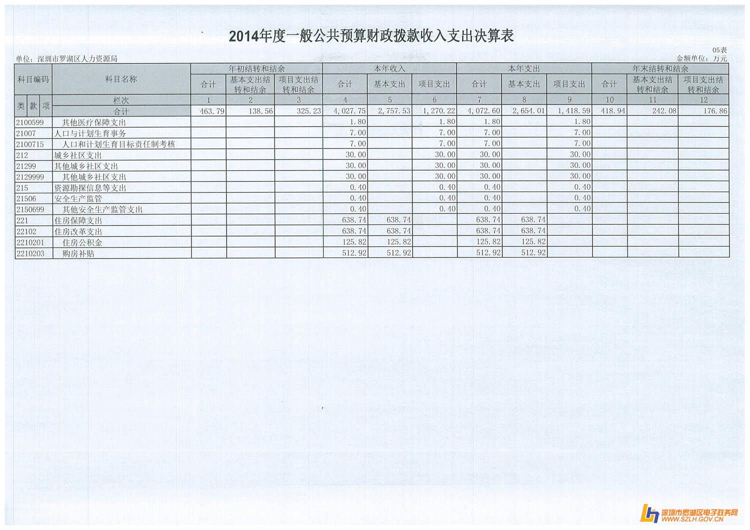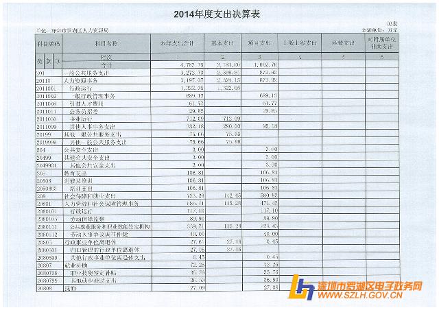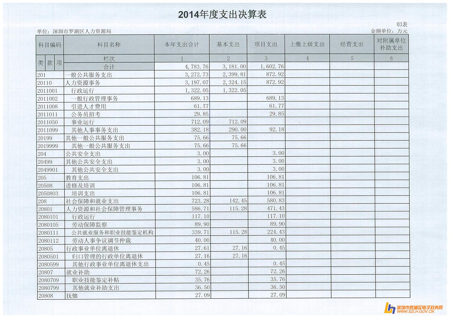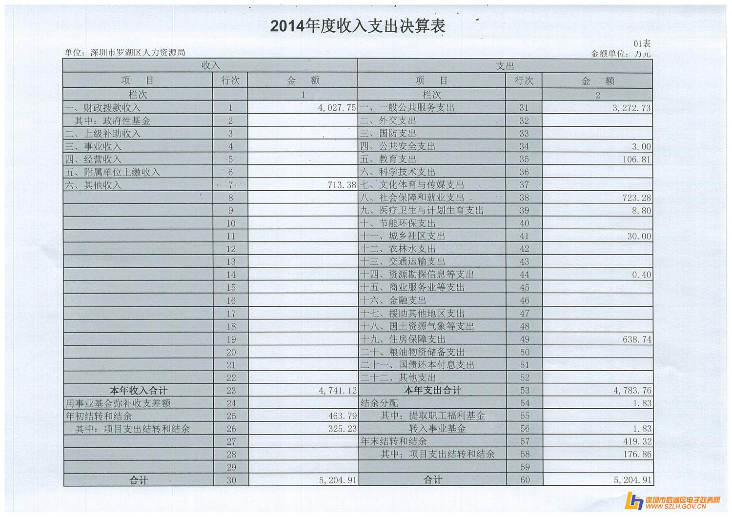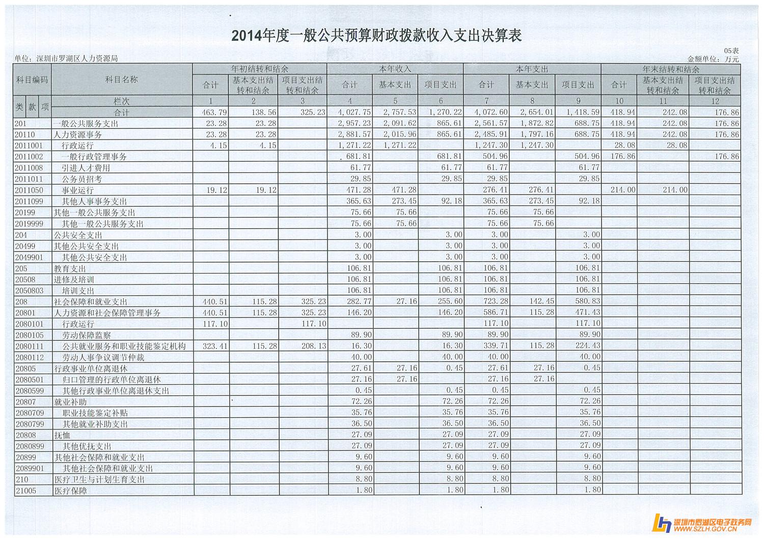 2014年罗湖区人力资源局决算表
