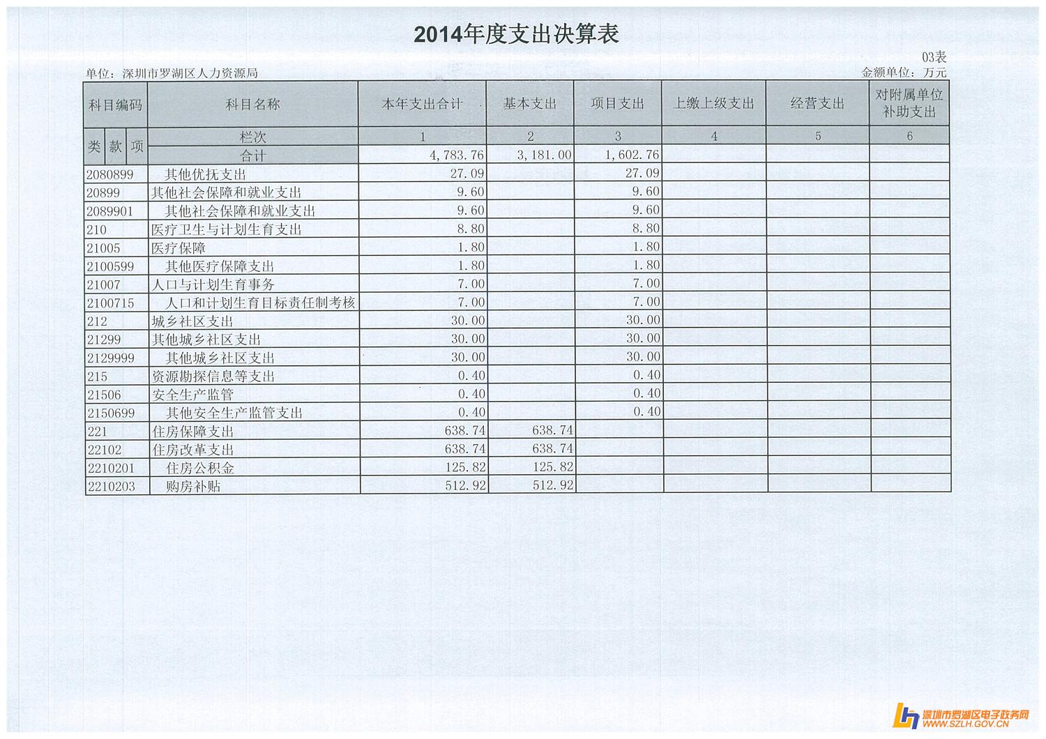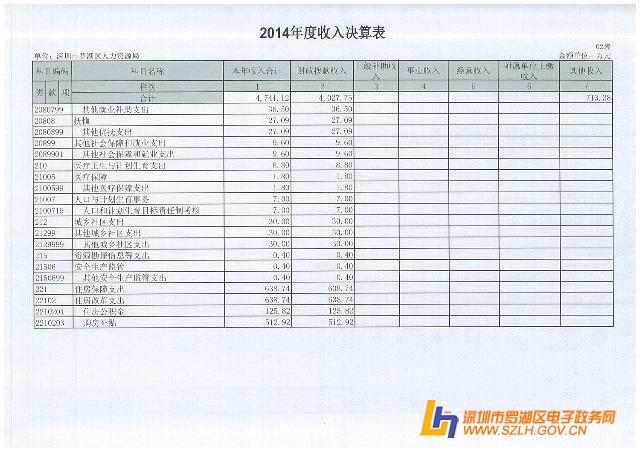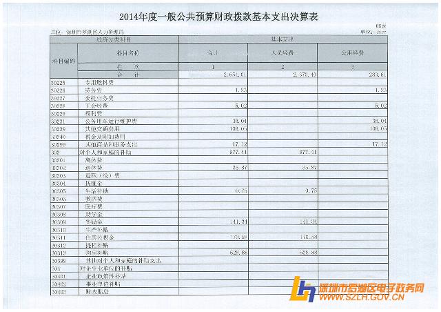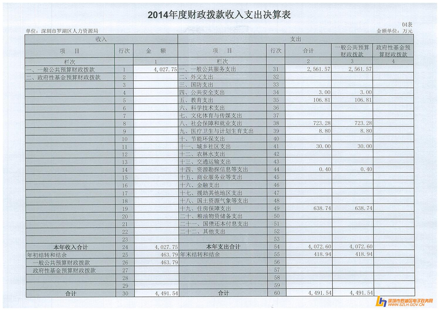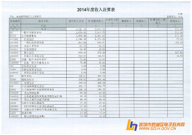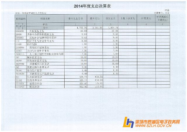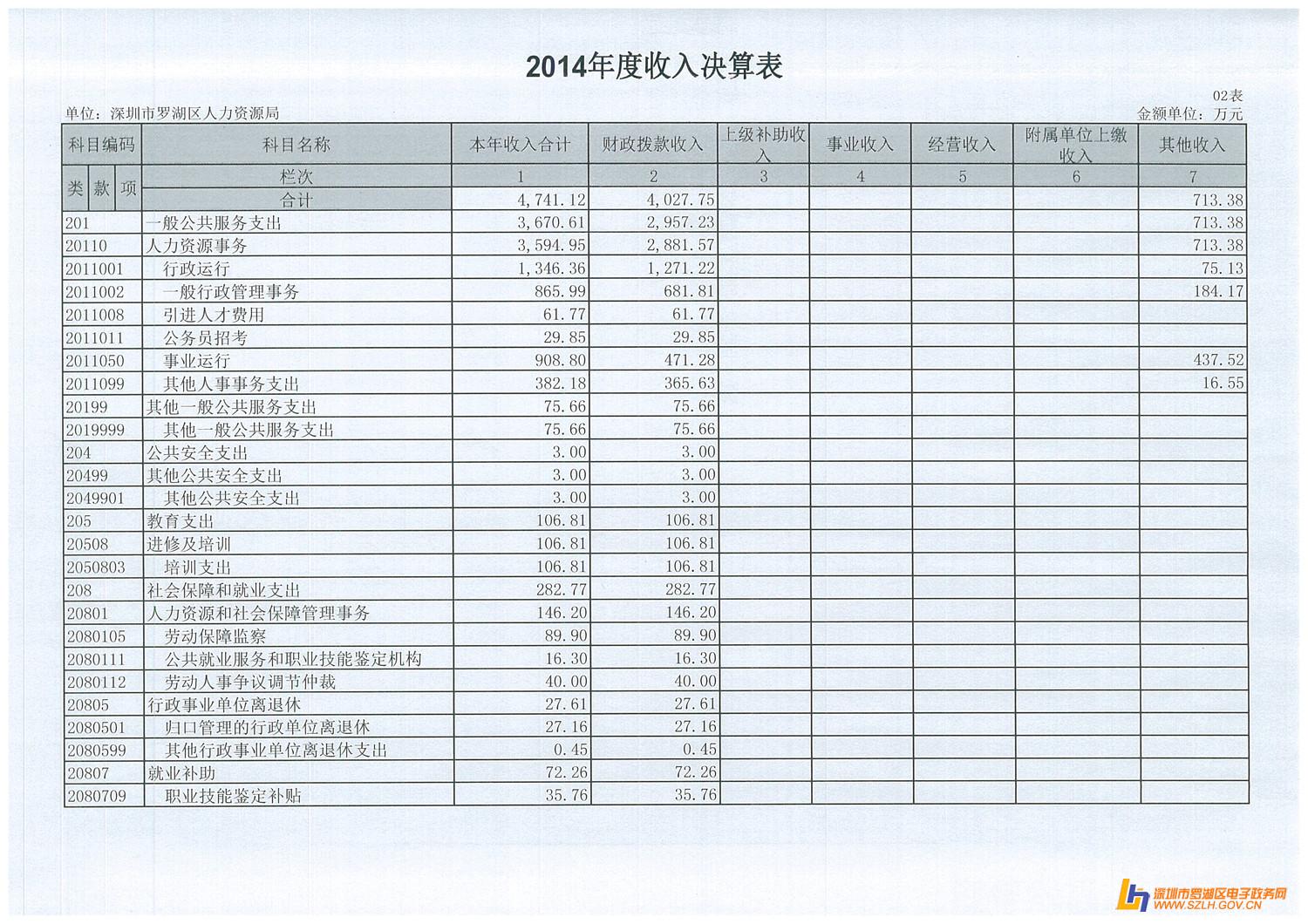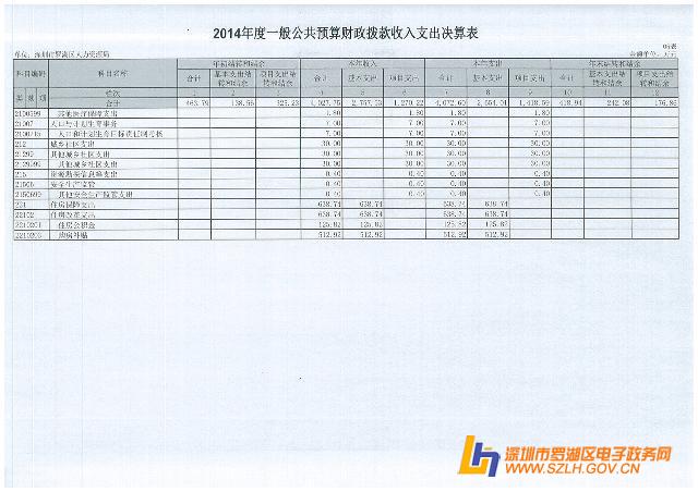 2014年罗湖区人力资源局决算表