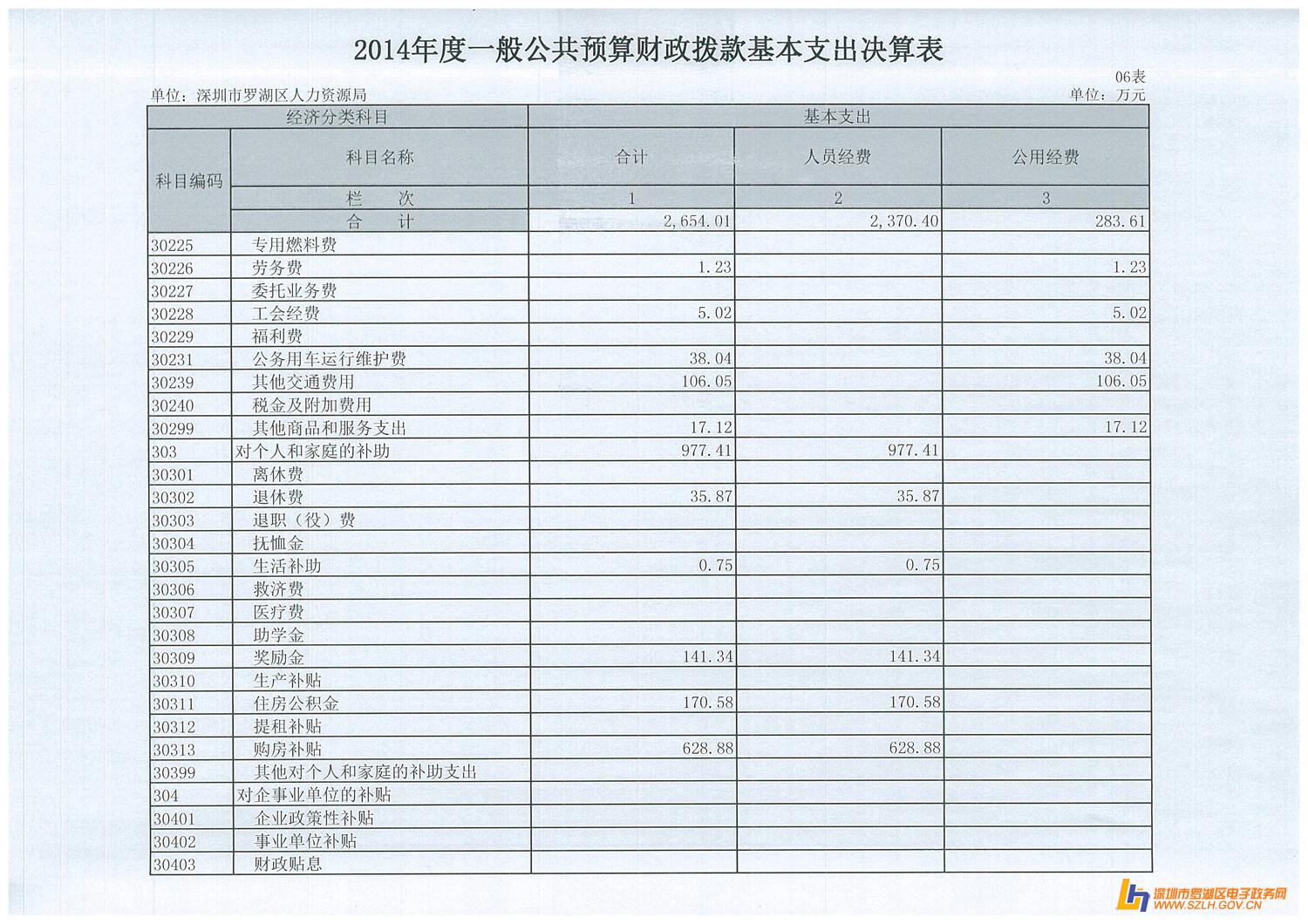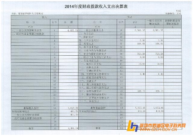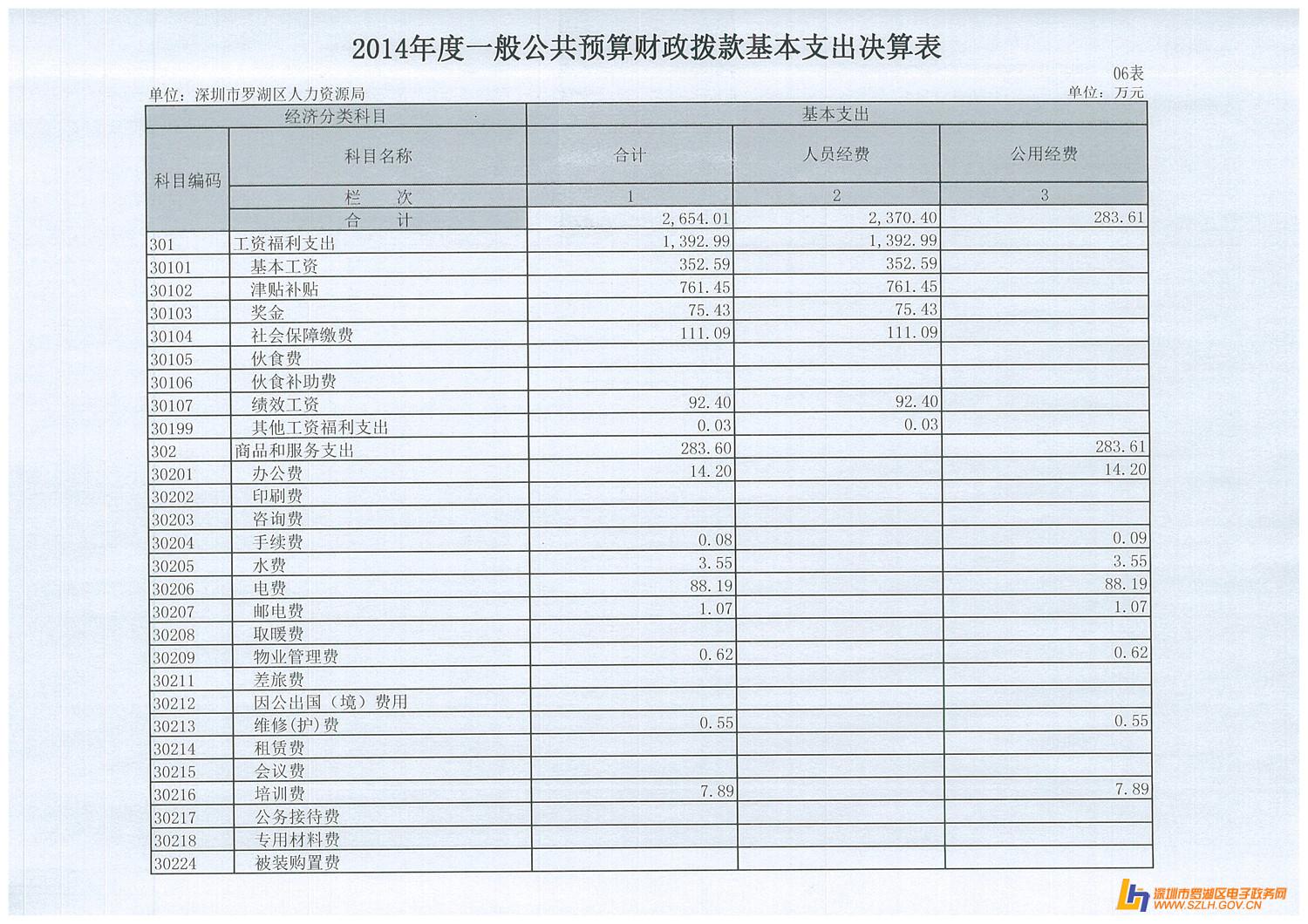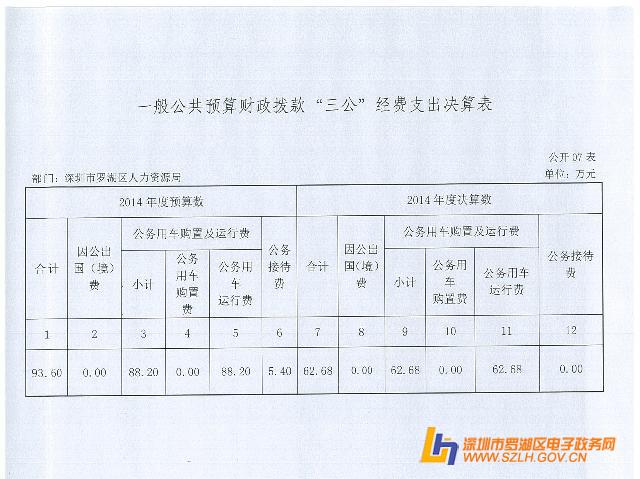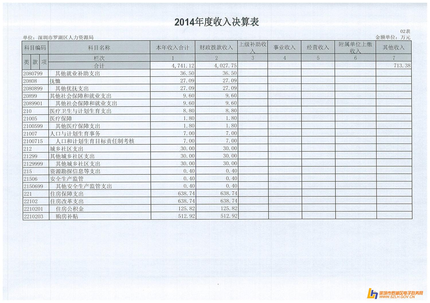 2014年罗湖区人力资源局决算表