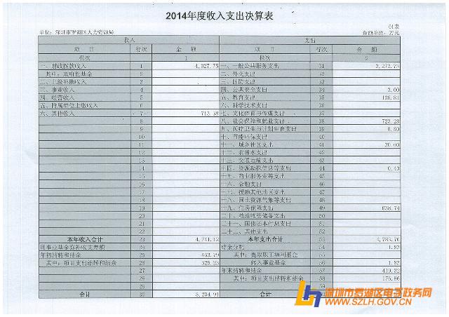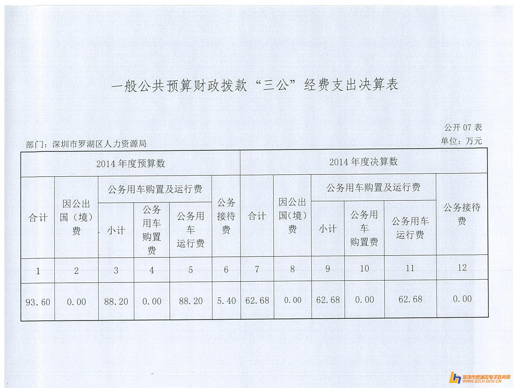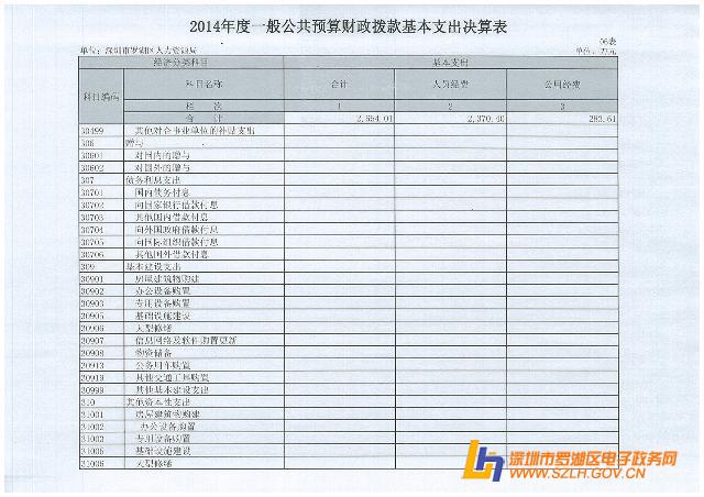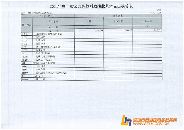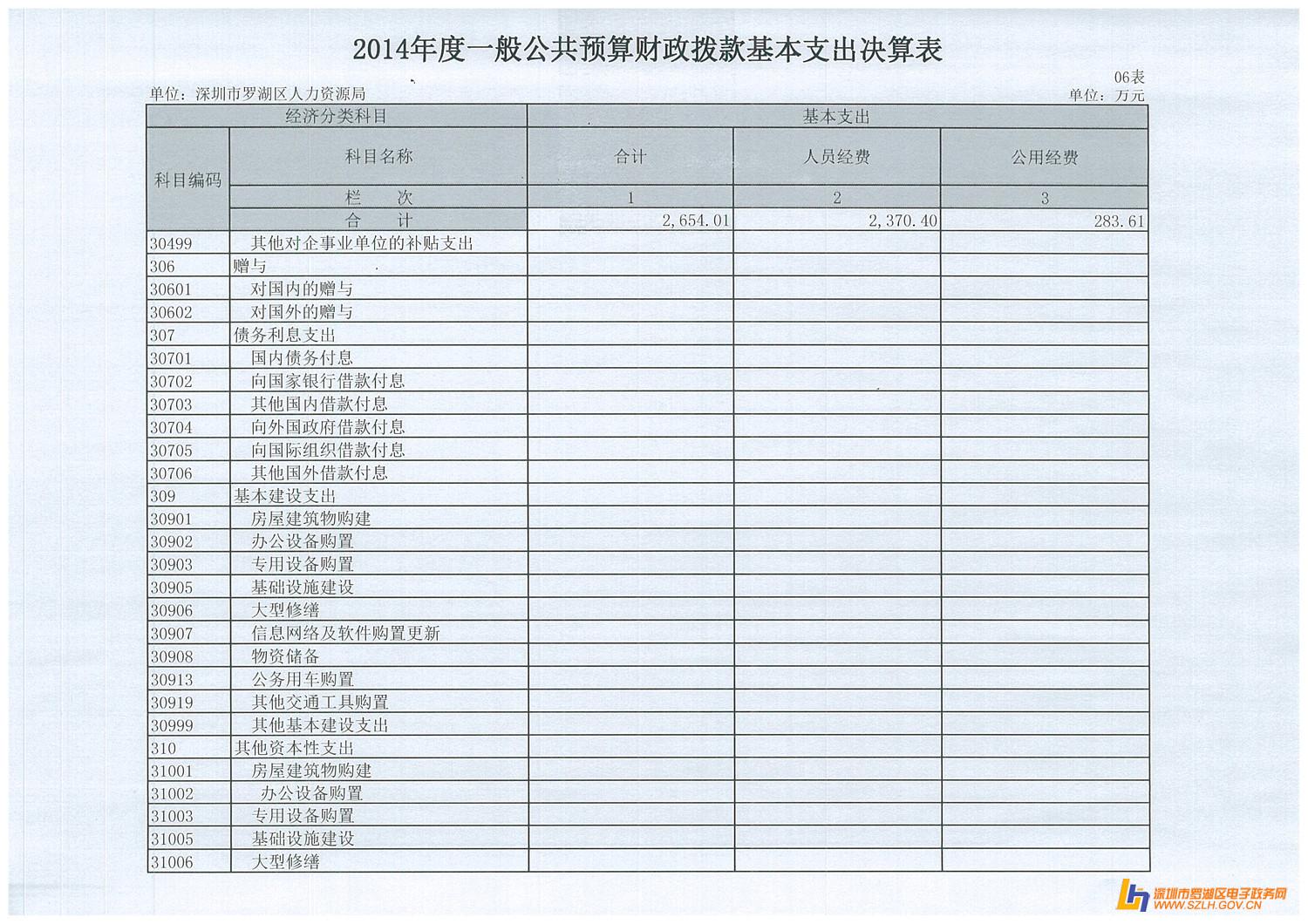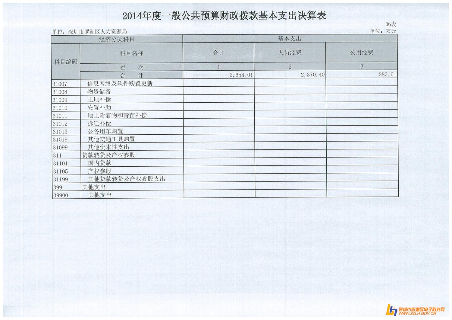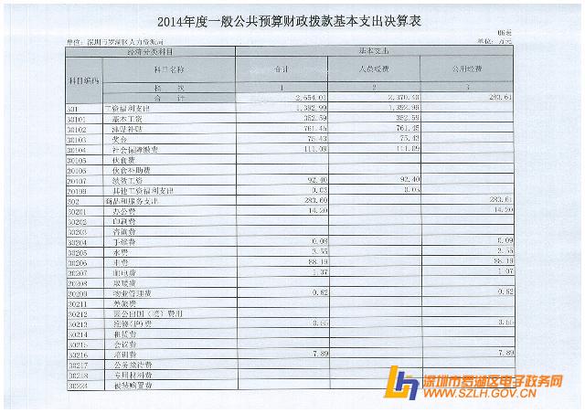 2014年罗湖区人力资源局决算表