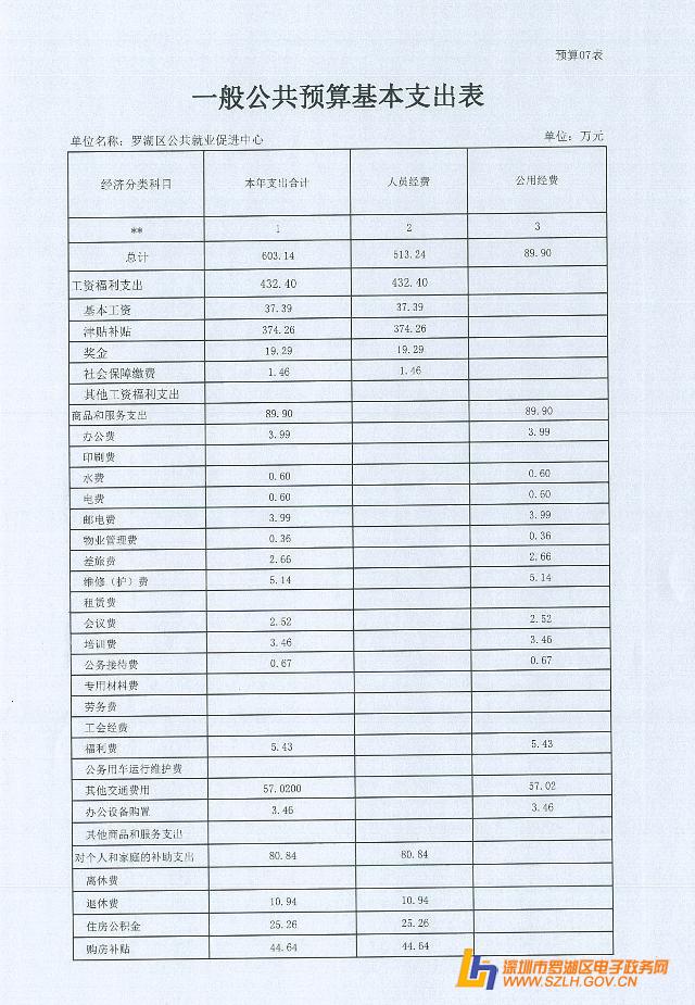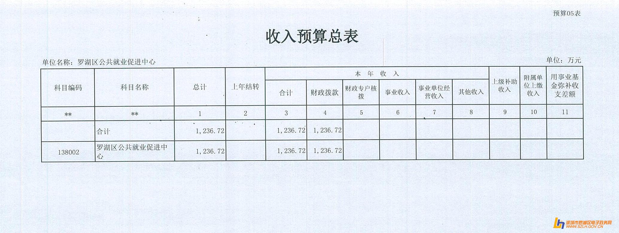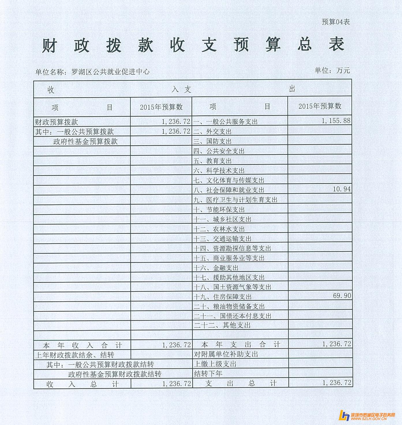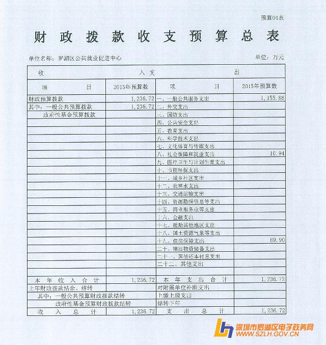 2015年罗湖区公共就业促进中心预算公开表