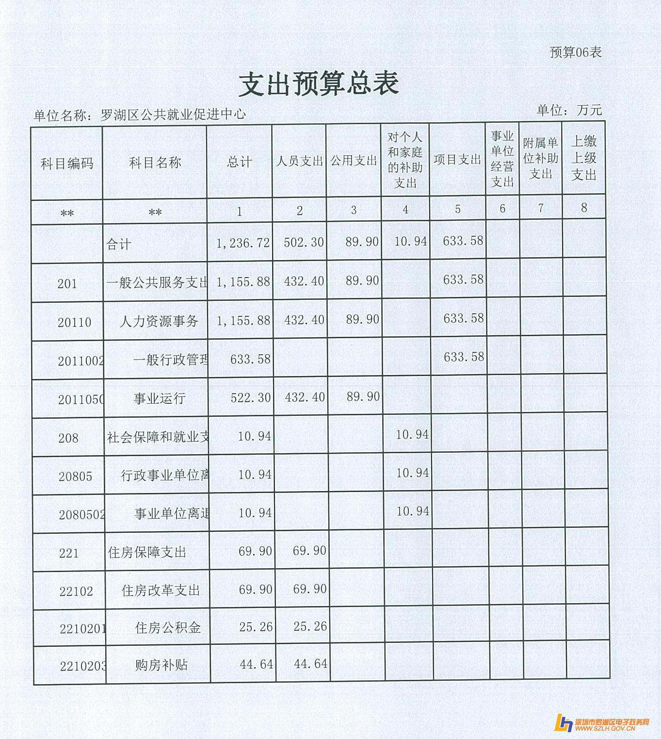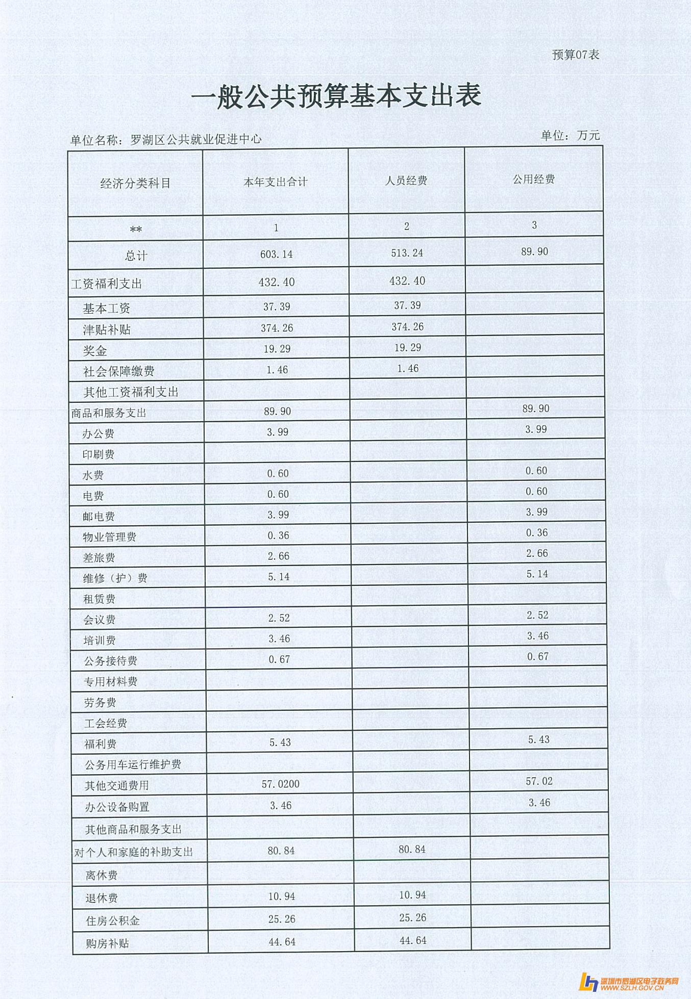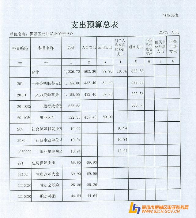 2015年罗湖区公共就业促进中心预算公开表