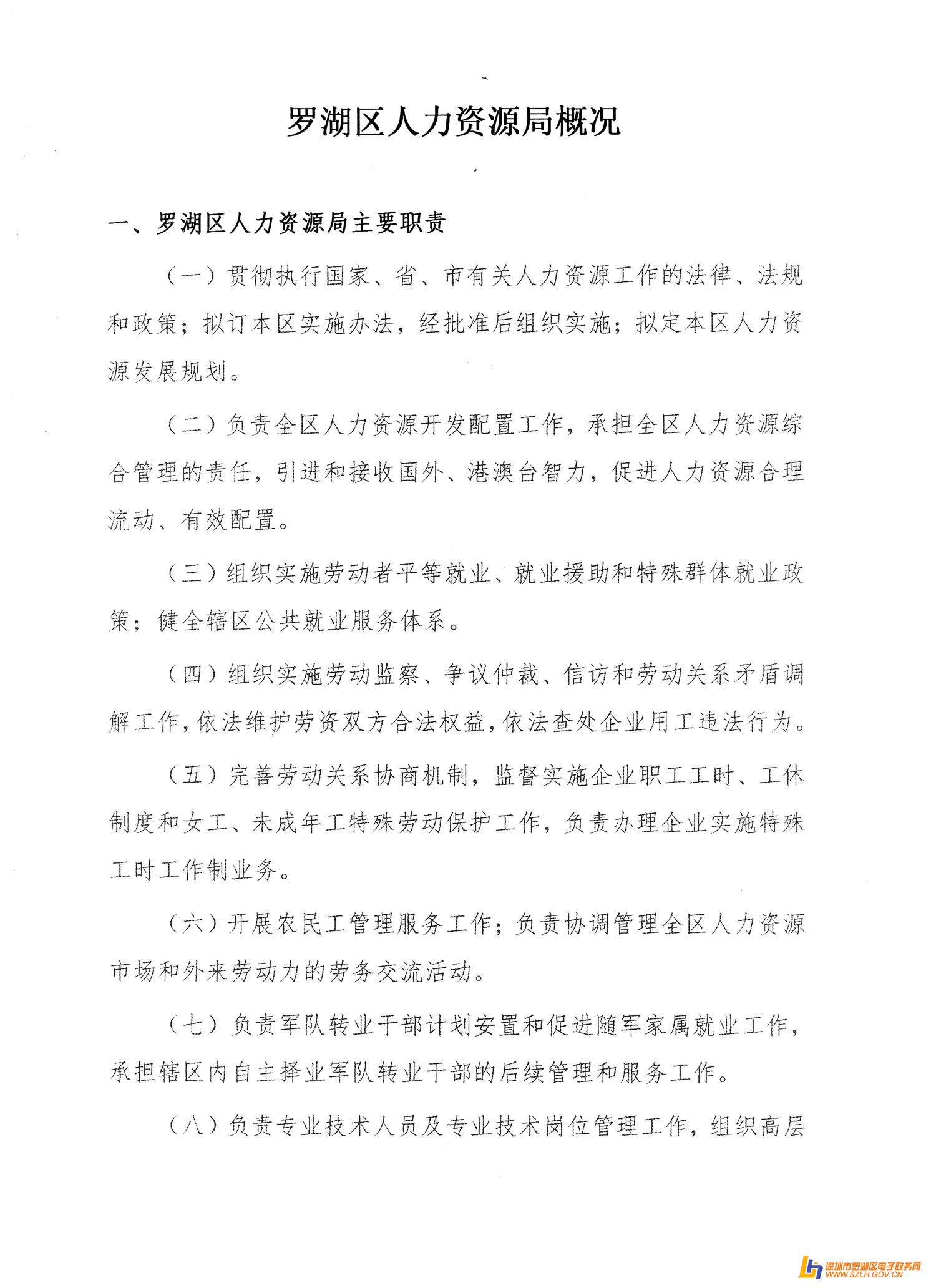 一、 罗湖区人力资源局主要职责