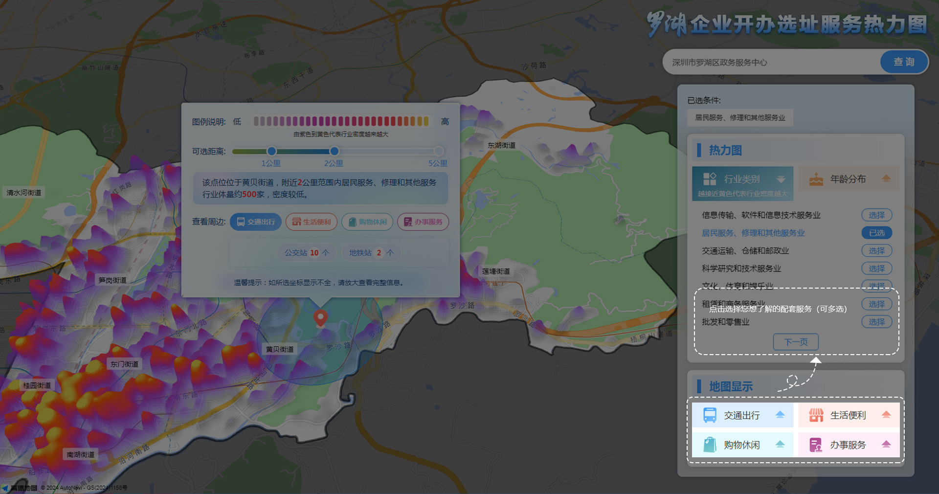 罗湖企业开办选址服务热力图