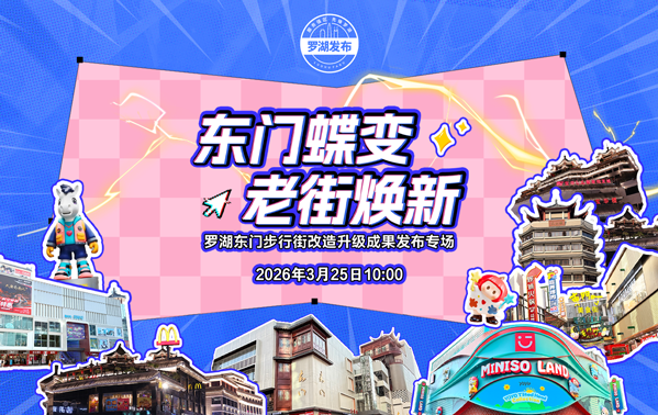 3月25日10时,深圳“罗湖发布”举行东门专场。罗湖区东门街道将联合深圳市罗湖城市发展有限公司、新白马·次元9号、MINISO LAND(罗湖东门店),共同带来“东门蝶变 老街...