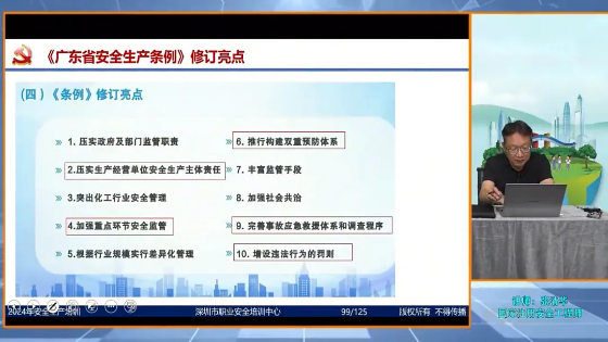 此外,张清华还罗列出《广东省安全生产条例》的九条修订亮点,如压实政府及部门监管职责、压实生产经营单位安全生产主体责任、加强重点环节安全监管、完善事故应急救援体系和调查程序等。