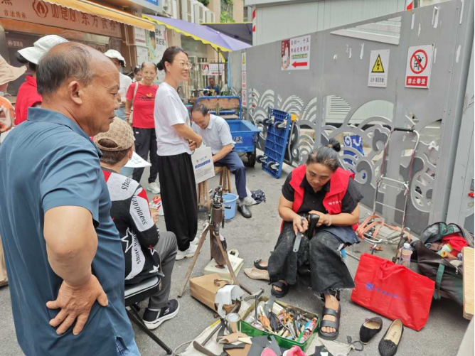 “我现在年纪大了,出门修鞋子腿脚不方便,今天社区开展这种服务真是太方便了!”在坳下社区便民服务活动现场,78岁的黄伯伯一边等候修鞋师傅,一边开心地说道。随着师傅熟练地修补,一双破洞的鞋子变得“完美”如初。旁边的磨刀摊位前也围着不少群众,大家说笑着,真切感受到社区的便民服务带来的便利。