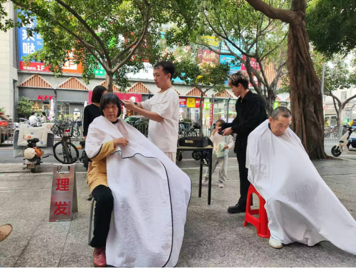 “义剪”是畔山社区便民服务众多项目中的人气品牌。起初,社区网格员在走访中得知,不少老人为剪发发愁,一是年纪大了不方便,二是担心去美发店铺得不到满意的服务。了解到情况后,社区积极动员辖区美容美发店铺加入到便民服务,通过为群众服务回馈社会,实现价值。于是一张小凳子、一套理发工具,一个移动的简易“发廊”就这样开始了。“您想剪什么样的发型?”“头发剪到这么短可以吗?”理发师们耐心地询问居民们的诉求,为其精心设计修剪各种发型。这种免费的义剪服务,虽然看起来微不足道,却实实在在地满足了居民朋友们的需求,也让老人们感受到了来自社会的关心与爱护,增添了幸福感。
