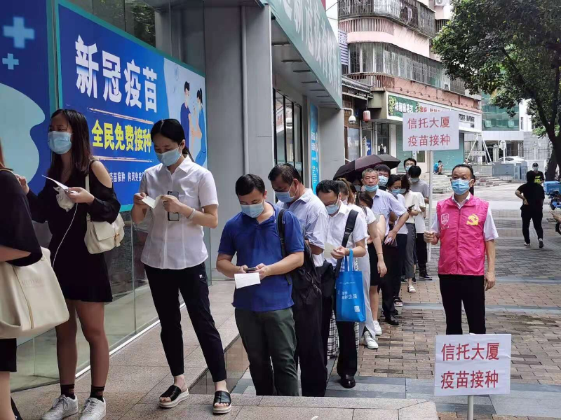 服务有温度。桂园辖区重点楼宇众多,企业密集,我委以“为群众办实事”活动为契机,深入楼宇了解企业防疫形势与疫苗接种情况后,打捞出白领职工“预约难”“排队长”“误工作”等突出问题。经联系桂园街道社康中心,在鸿隆世纪广场党群服务中心设立疫苗接种点,为“两新”企业提供专场接种服务,主要服务企业有中装建设集团、君胜集团、携程旅游、华纳物流、太平洋保险等,茂业和平支部支记阎红、港澳国旅支部书记徐国栋、鸿隆优秀志愿者许金铭等人以最大的热忱支援现场,累计完成上千人接种量;在京基A座8楼开设疫苗接种专场,主要服务京基100楼宇企业及周边楼宇企业,累计接种1700余针,京基联合党委书记陈小斌、京基物业党支部书记王丹丹等带领支部党员齐齐上阵进行维护秩序、扫码登记等工作,大大提高了接种效率;在信托大厦为楼内100余名白领职工送上疫苗接种服务,信托大厦管理处支部书记庄光明等3名党员志愿者现场指导资料填报,便捷接种。一场场贴心的“送疫苗进楼宇”活动极大满足了楼宇企业的集中接种需求。
