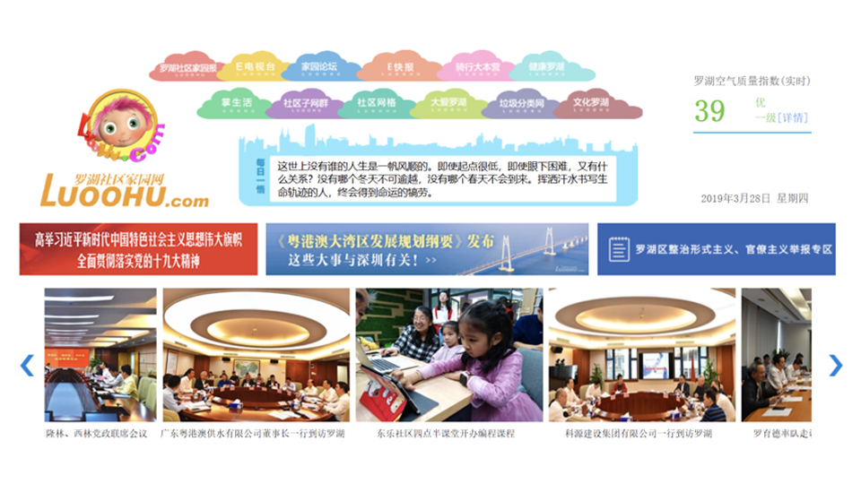 Luoohu.com, the first community website sponsored by a district government in China, was launched in April 2007. It won the special contribution award of the network culture development of Shenzhen, and was the only website given this honor.