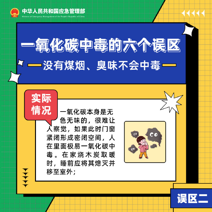 一氧化碳中毒常常因疏忽而发生,“只有烧煤才会引起中毒”,“没有煤烟,臭味不会中毒”,“门锁上有缝隙不会中毒”......这些误区很可能会导致一氧化碳这个“隐形杀手”悄悄靠近我们,戳↓↓↓一起走出误区