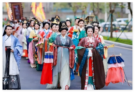 华灯初上,“才子佳人”“古代将士”开启巡游,与东门夜景交映,沿途多处灯光打卡点可随时合影,定格古今交融瞬间。