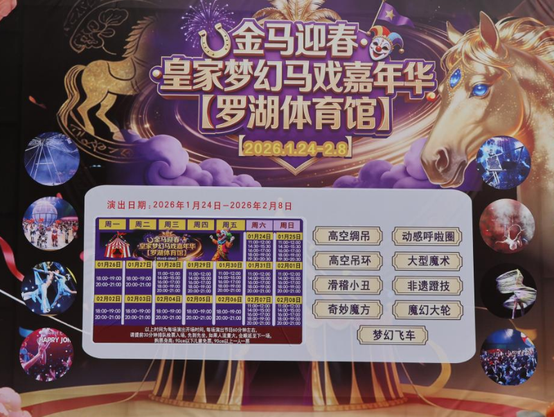 金马迎春・皇家梦幻大马戏嘉年华于罗湖体育中心精彩启幕。嘉年华以“文化+民俗+美食”深度融合为核心形式,不仅带来极具民俗文化底蕴的歌舞表演,更汇集缤纷美食、趣味游乐等多元体验,打造沉浸式文旅盛宴。仙桐文体公司积极发挥文体阵地功能作用,不断丰富市民节日文化生活,激发区域消费活力,为新春消费市场注入全新动能。