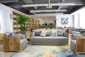 悠·图书馆(新秀社区)位于古玩城之中,馆内采用清新质朴的原木风格,布局雅致不失大气,还有专门配合少儿阅览设置的儿童桌椅,是值得社区居民“收藏”的精神文化乐园。