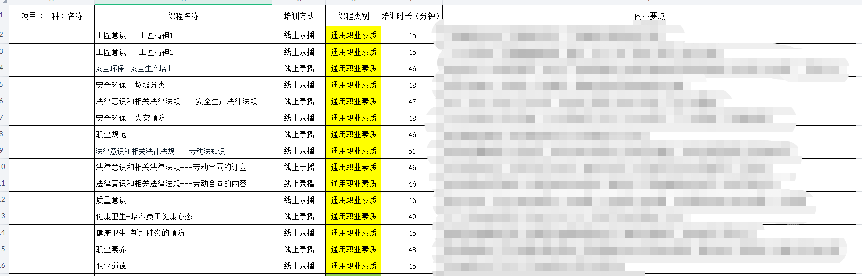 注意:通用职业素质课程对于提高员工综合素质具有相当意义,文件中要求将通用职业素质贯穿于课程之中,项目审批操作中一般要求课程中必须包含通用职业素质的所有科目,不得缺项漏项。