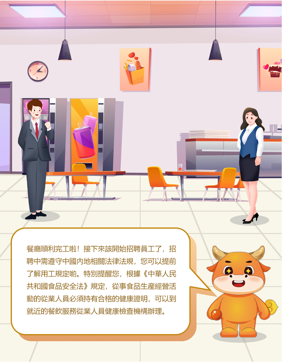 依據《食品安全法》《廣東省食品從業人員健康檢查的管理辦法》規定,凡從事接觸直接入口食品工作的從業人員應當每年進行健康檢查,並取得廣東省市場監督管理局簽發的《健康證明》後,方可上崗工作。
