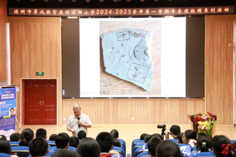 2024年10月25日,由深圳市科学技术协会主办,深圳市广播电影集团承办的“院士专家进校园”活动走进水田小学和梅园实验学校,中国科学院院士、古生物学家王文利教授作为特邀嘉宾,主讲《生命史话》,为罗湖学子们揭示地球生命从无到有、从简单到复杂、从水生到陆生的演变过程。