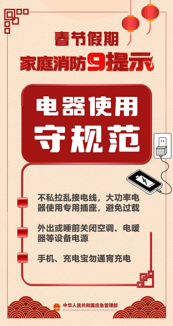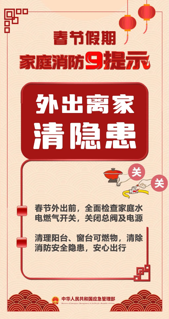 春节假期家庭消防9提示