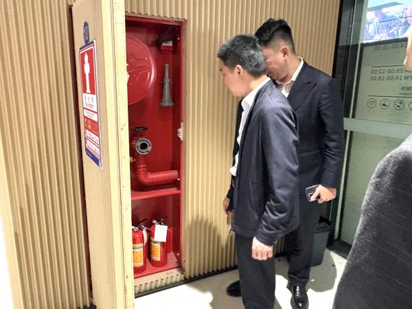 曾德怀同志一行逐楼层、逐区域、逐部位对罗湖区政务服务中心进行拉网式安全检查,重点查看中心门口防撞石墩、室内消防设施器材、机房等关键安全点位设置和运行情况。