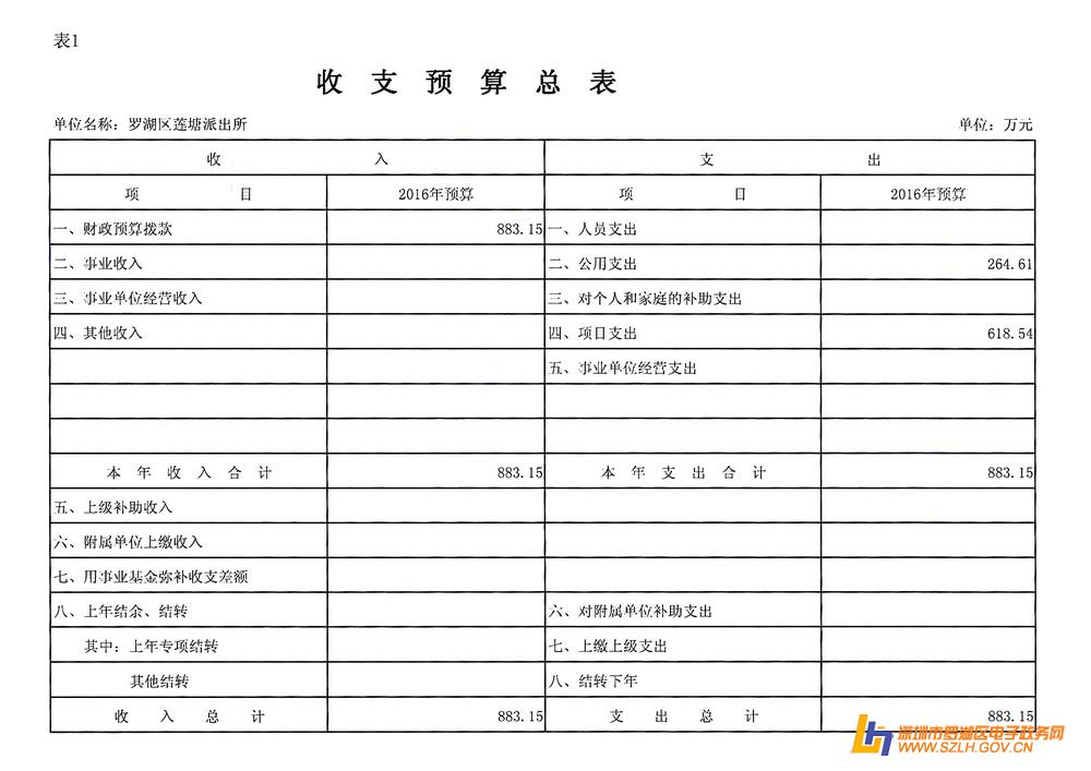 表1:《收支预算总表》
