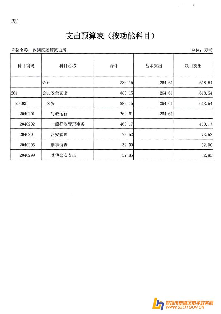 表3:《支出预算表》(按功能科目)