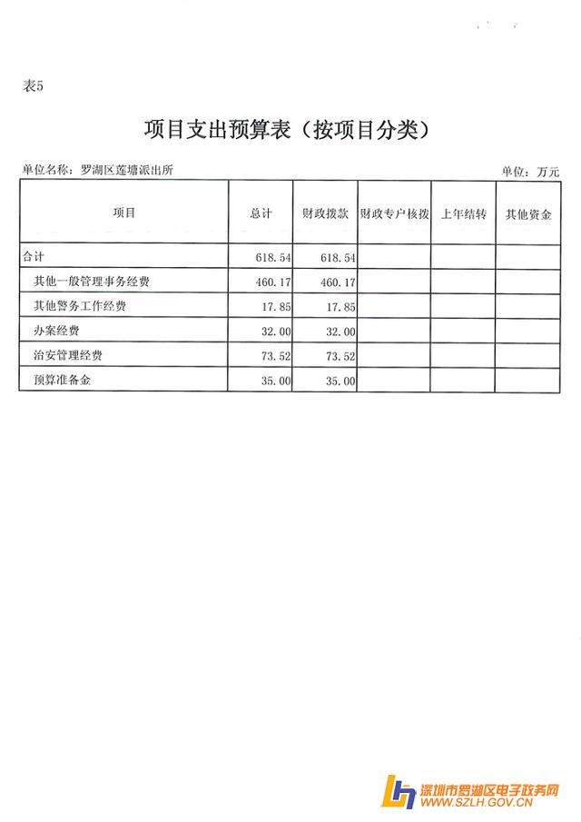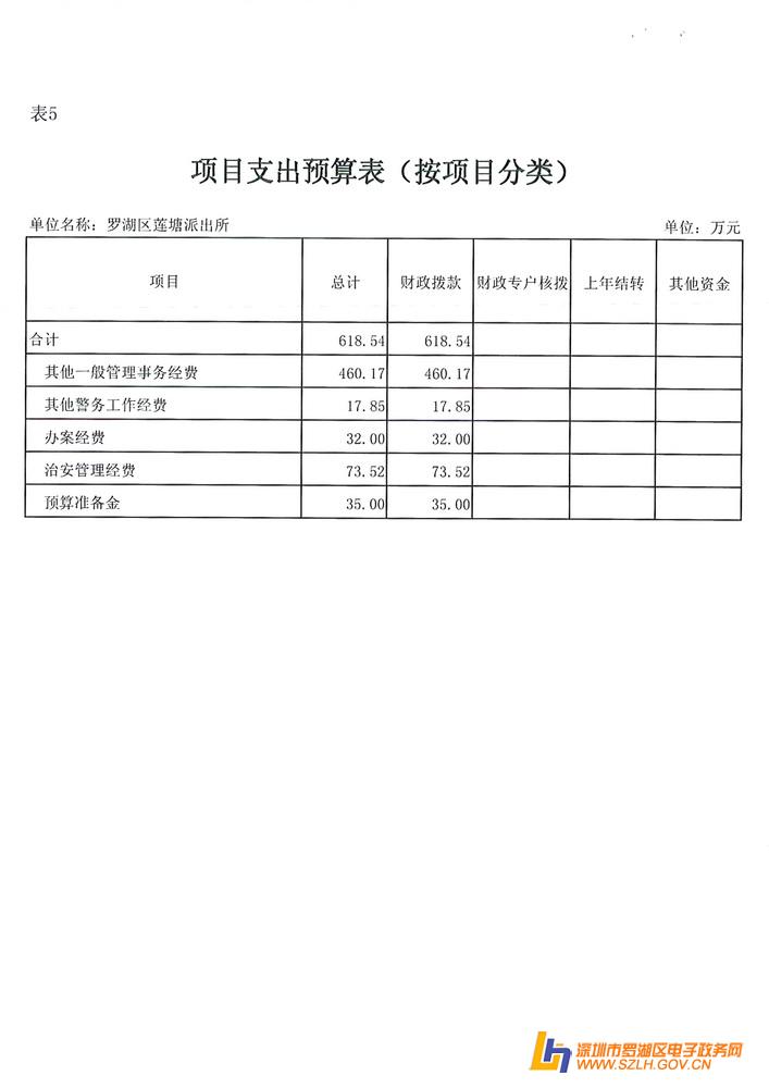 表5:《项目支出预算表》(按项目分类)