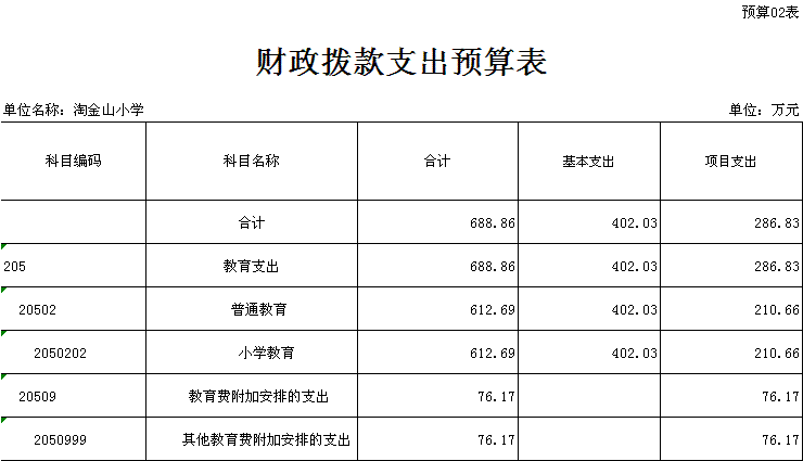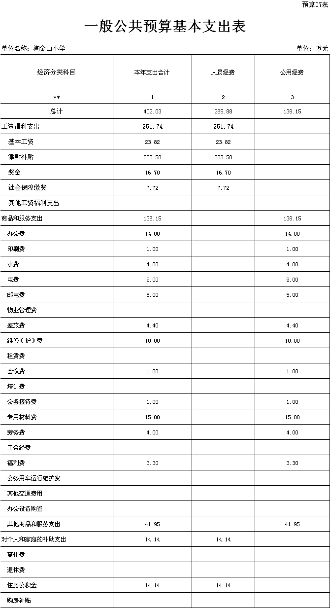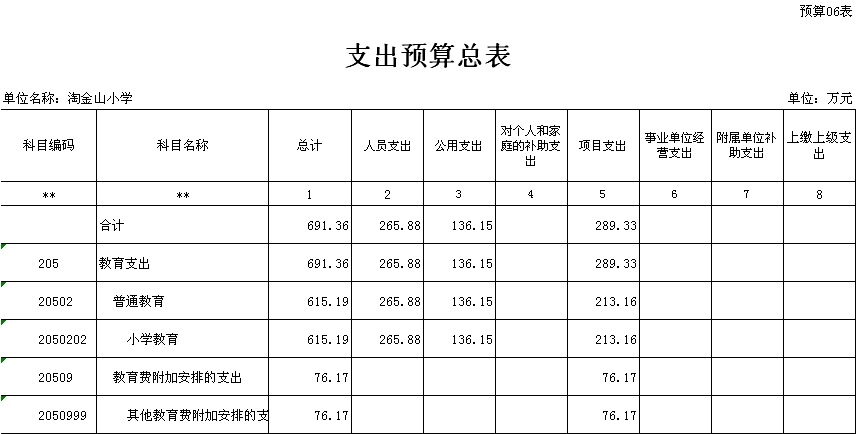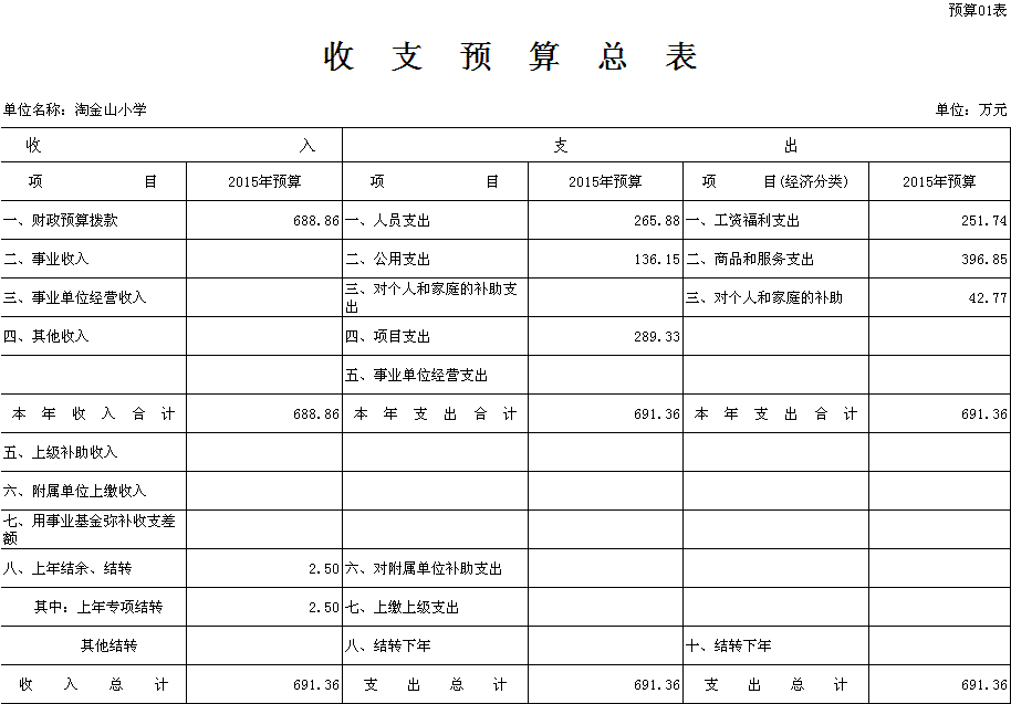 深圳市淘金山小学2015年财政收支和三公经费预算