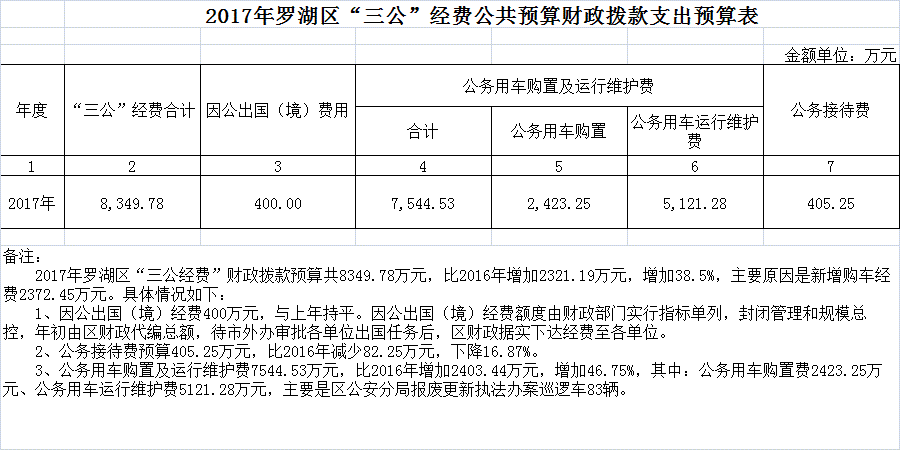罗湖区2017年“三公”经费公共预算财政拨款支出预算表