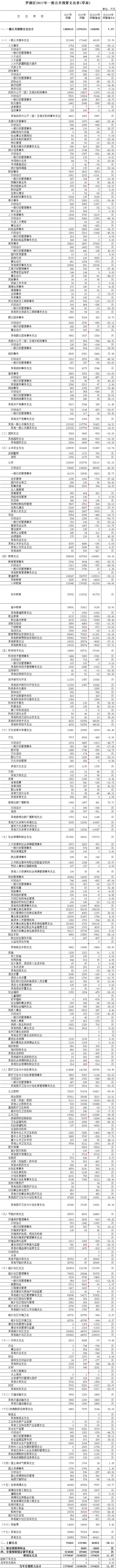 罗湖区2017年一般公共预算支出表(草案)