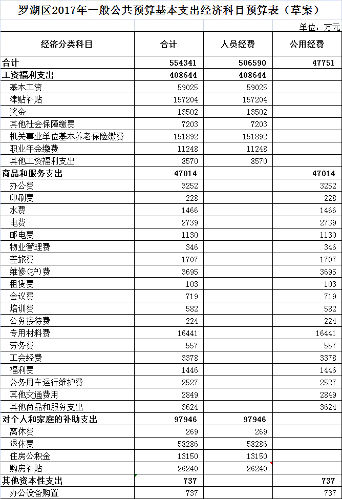罗湖区2017年一般公共预算基本支出经济科目预算表(草案)
