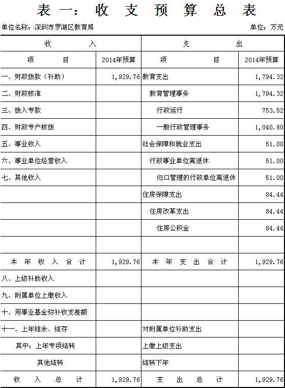 2014年深圳市罗湖区教育局财政收支和三公经费预算