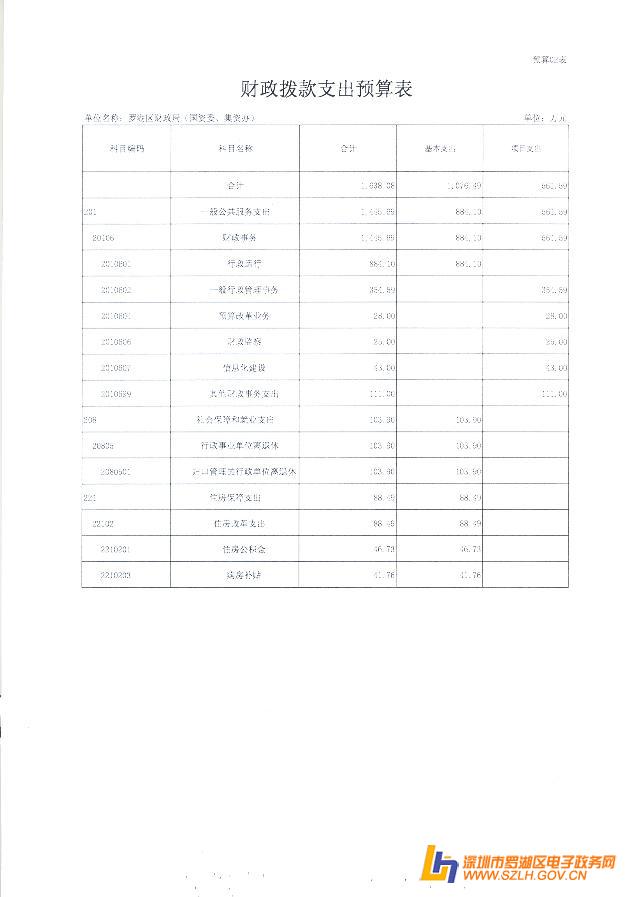 罗湖区财政局(国资委、集资办)财政拨款支出预算表